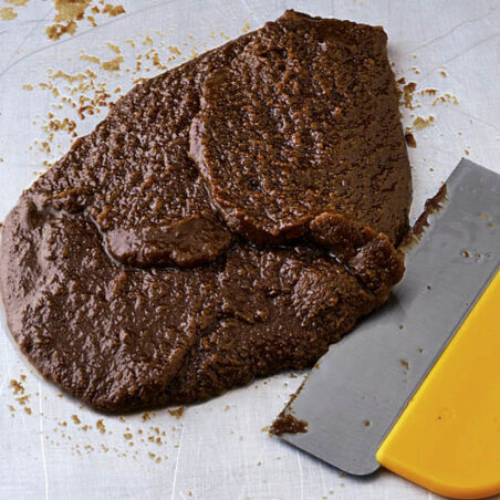 Die hitzebeständige Arbeitsfläche (Backblech, Granit/Marmor, Edelstahl) und den Spachtel mit dem Öl einpinseln oder einreiben.