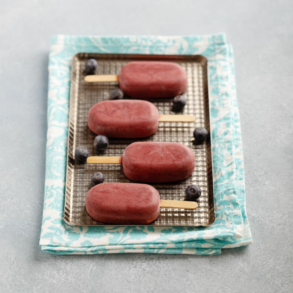 Heidelbeeren, Kokosmilch und Agavendicksaft in einen hohen Rührbecher geben und mit dem Mixstab fein pürieren. In vier Eisförmchen füllen und über Nacht tieffrieren. Zum Auslösen die Form in heißes Wasser stellen.