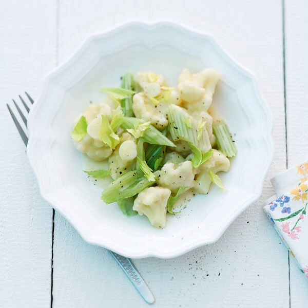Blumenkohl im Kombination mit Sellerie schmeckt super lecker und macht Appetit auf mehr. So kann man Gemüsse genießen.