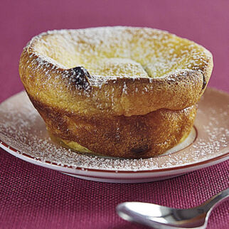 Den Teig mit restlicher Eiermilch bestreichen. Das Muffinblech in den Ofen (Mitte) schieben. Eine kleine Tasse Wasser auf den Ofenboden gießen, die Ofentüre sofort schließen und die Temperatur auf 180° (Umluft 160°) herunterschalten. Die Muffins etwa 15 Min. backen. Dann herausnehmen, kurz abkühlen lassen und aus der Form lösen. Vor dem Servieren mit Puderzucker bestäuben.