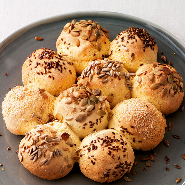 Frische Brötchen mit Samen schmecken selbstgebacken unübertroffen. Die Zubereitung mit glutenfreiem Mehl und Hefe erfolgt wie bei herkömmlichem Hefeteig..