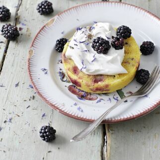 Den Backofen auf 200° vorheizen. Den Boden der Form mit Butter gut einfetten. Die Brombeeren waschen, putzen und auf Küchenpapier abtropfen lassen. Die Pekannüsse fein hacken.