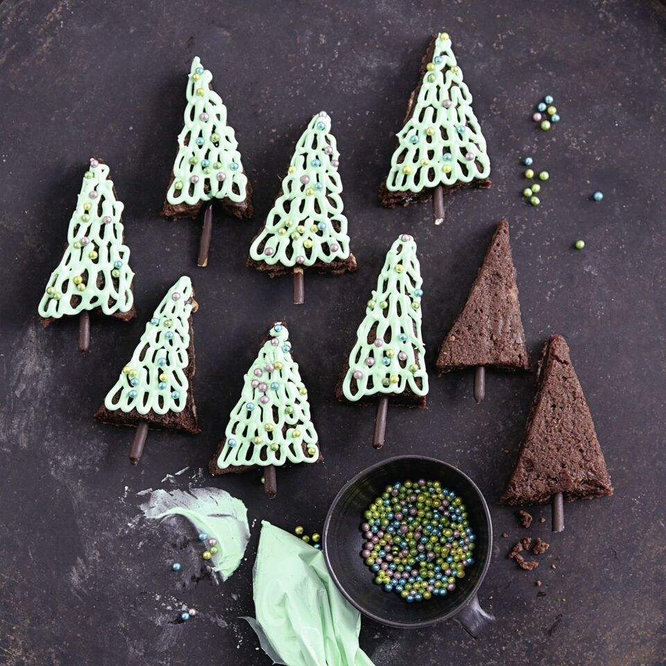 Perfektes Outfit für Brownies zur Weihnachtszeit: Diese kleinen Schoko-Tannenbäume sehen zum Anbeißen süß aus.
