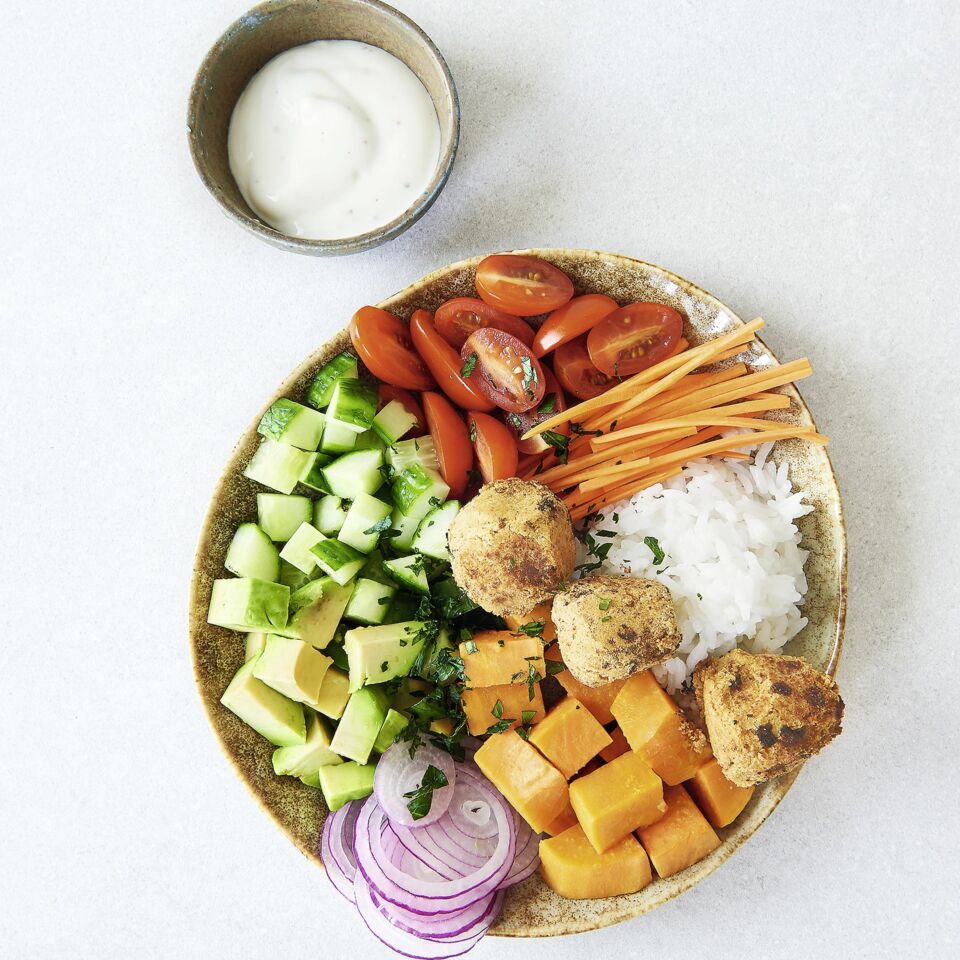Das Highlight dieser Buddha-Bowl? Die selbst gemachten Falafeln. Oder doch die Süßkartoffeln? Oder die Avocado? Entscheide selbst ...