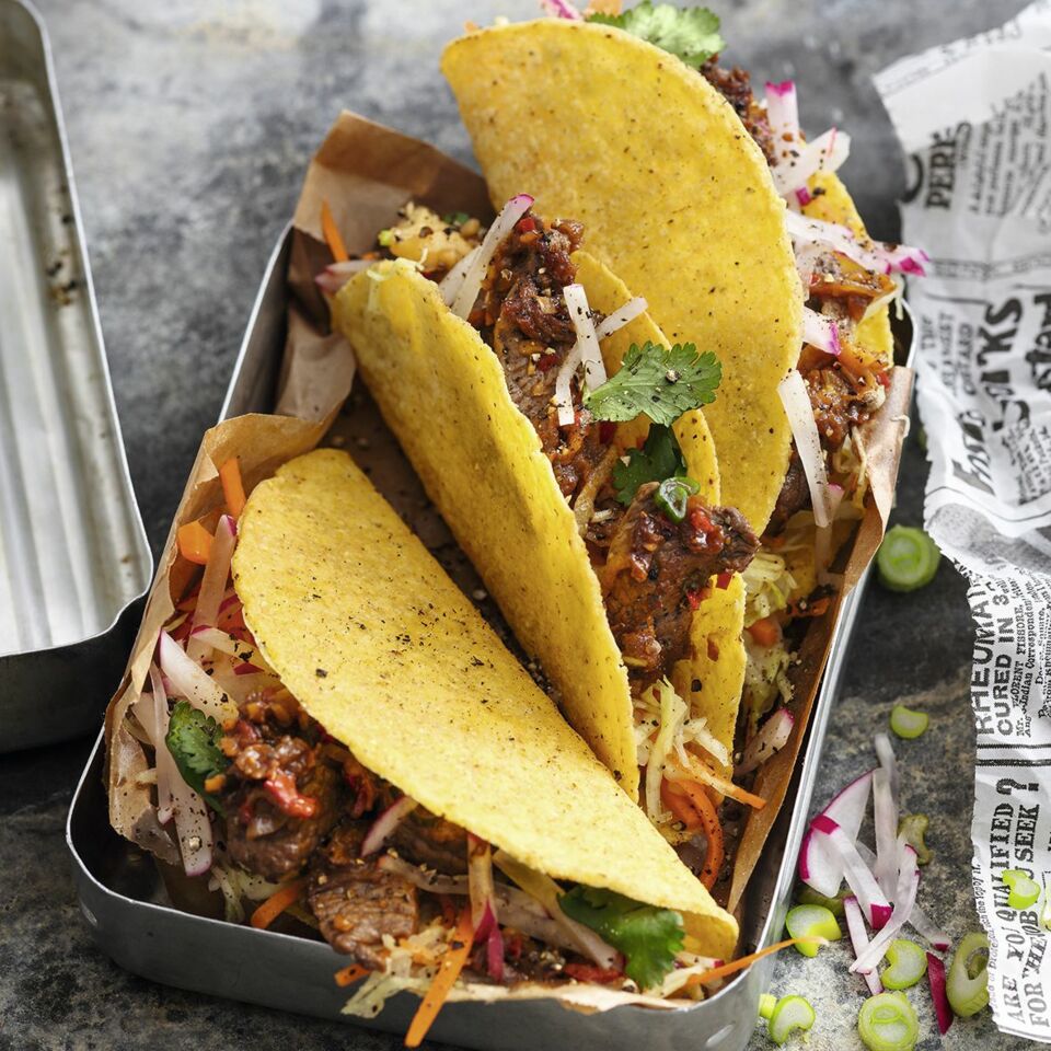 Chiliwürziges Rindfleisch auf koreanische Art ist nicht so weit entfernt von Zubereitungen, die in Mexiko üblich sind. Daher ist es auch die perfekte Füllung für Tacos.
