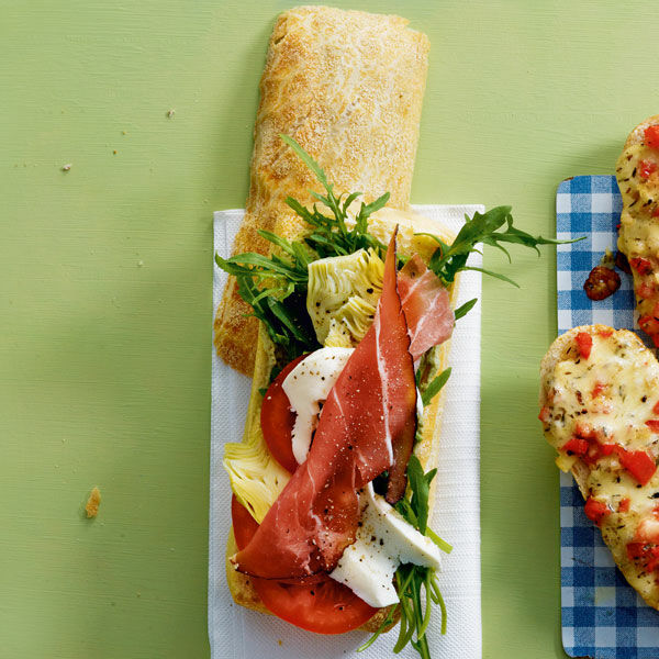 Reinbeißen und satt essen: Die Panini werden mit Artischockenherzen und rohem Schinken edel belegt.
