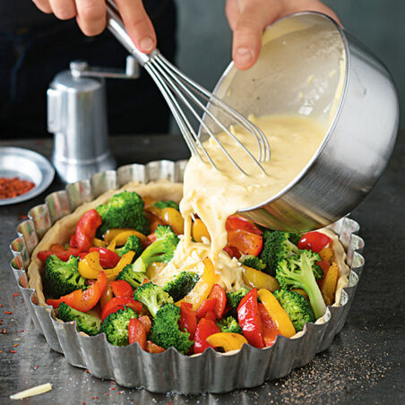 Mürbeteig, Belag und Guss - 1,2,3, fertig ist die Quiche! Mit dem einfachen Grundrezept lassen sich viele Varianten backen.