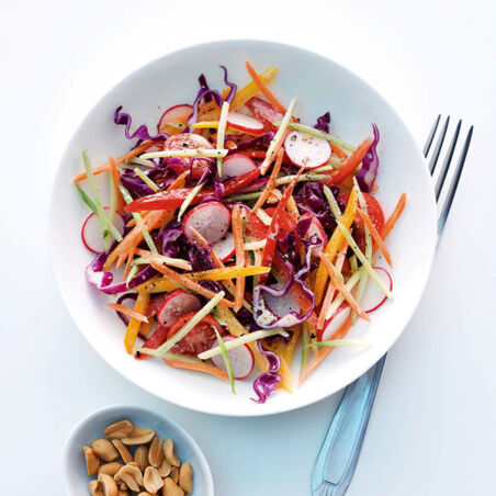 Diesen bunten Rohkostsalat können Sie einfach und schnell zubereiten. Zudem schmeckt die bunte Rohkost mit diesem exotischen Dressing einfach lecker.