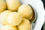 Dieser cremige Kartoffelsalat ist ein eigenständiges kleines Gericht - denn mit dem gebratenen Hähnchenbrustfilet erlangt es seine Vollendung.