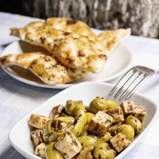 | 1 Handvoll | schwarze Kalamata-Oliven (ohne Stein) |