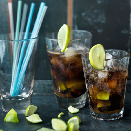 Den Zucker hinzufügen und Rum und Espresso dazugießen. Das Glas mit den Eiswürfeln füllen, mit Cola auffüllen und nach Belieben noch mit 1 Limettenscheibe garnieren.