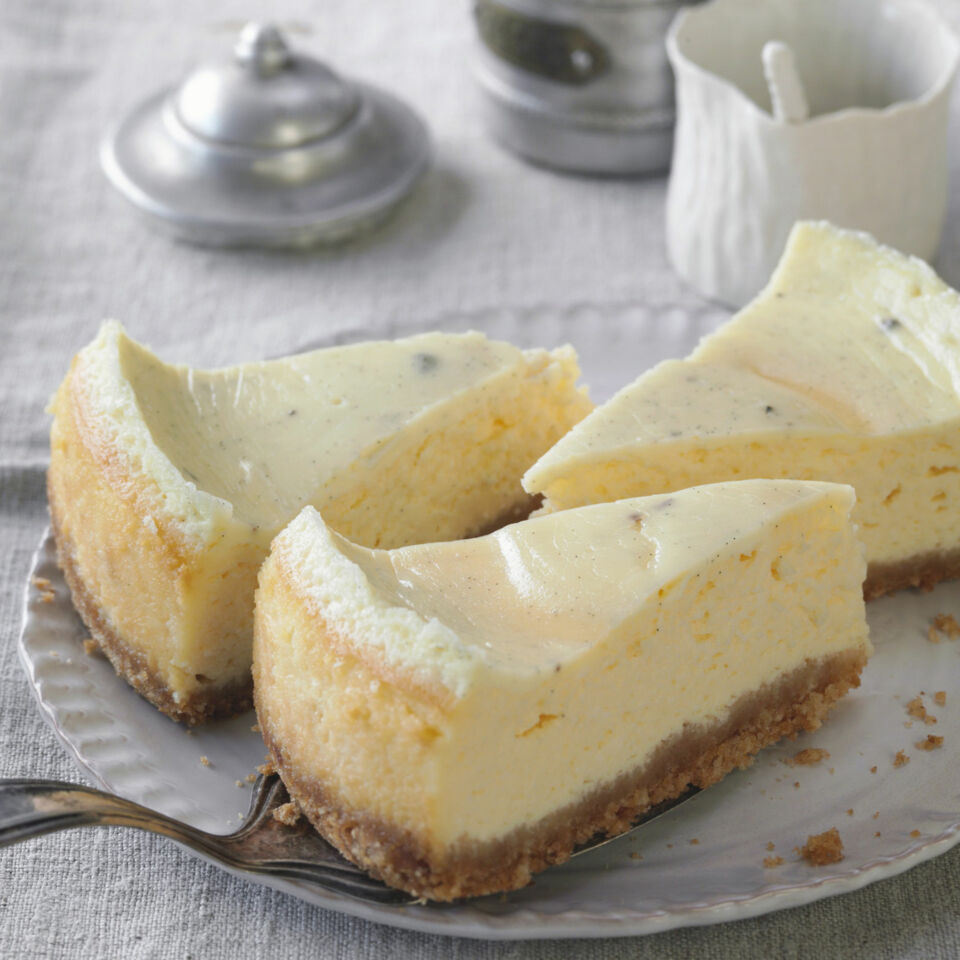 Was den USA-Hit vom deutschen Käsekuchen-Klassiker unterscheidet? Ein Belag aus Doppelrahmfrischkäse und ein Boden aus Bröselteig – schmeckt am besten mit Butterkeksen.