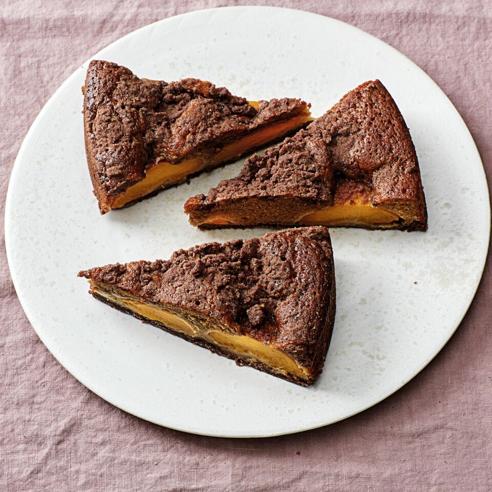 Aromatischer Cappuccino-Geschmack trifft bei diesem Kuchen auf die fruchtige Süße von Pfirsichen.