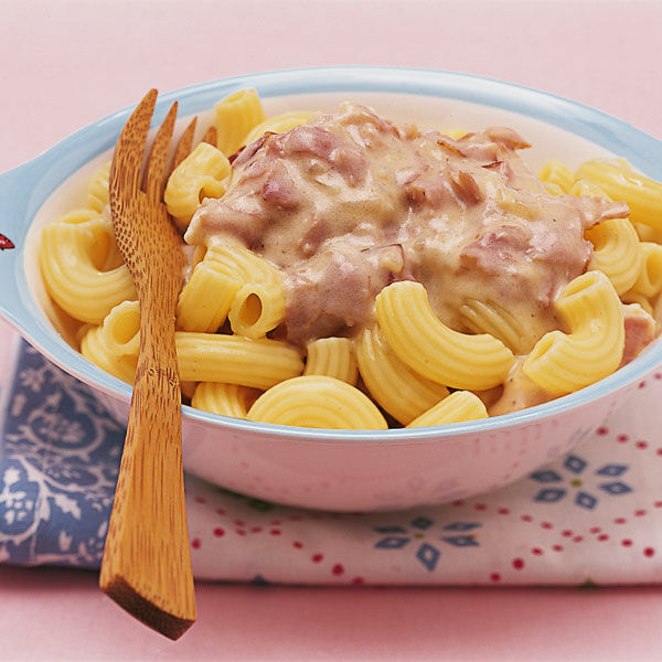 Eine schnelle Variante der berühmten Nudelsauce, bei der statt Speck gekochter Schinken verwendet wird. Dadurch wird die Sauce zum milden Kinderlieblingsessen.