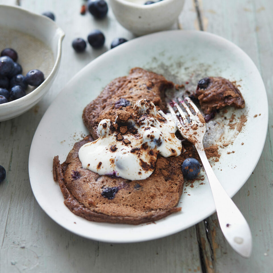 Carob-Pancakes mit Heidelbeeren
