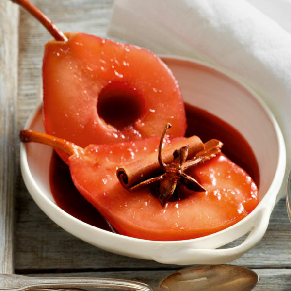 Die herb-würzigen Birnen passen hervorragend zu Wildgerichten, Gans, Roastbeef oder auch zu Marzipanmousse.
