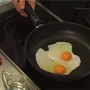 Die Butter in der Pfanne erhitzen und die Eier zu Spiegeleiern braten, leicht salzen und pfeffern. Die Eier auf die Ofenbrote setzen und diese sofort servieren.