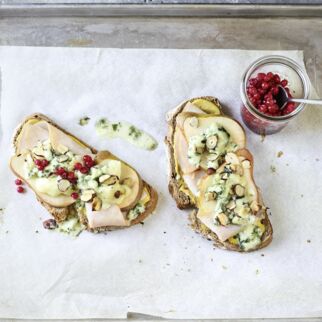 | 50 g | Putenbrustaufschnitt (in dünnen Scheiben) |