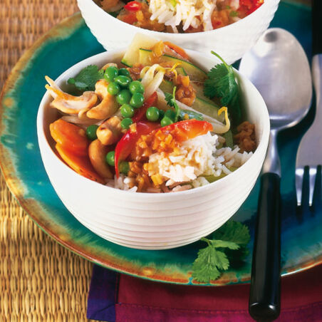 In diesem Reisgericht mit viel Gemüse kommen all diejenigen auf ihre Kosten, die Anhänger der süßsauren Würzrichtung sind.