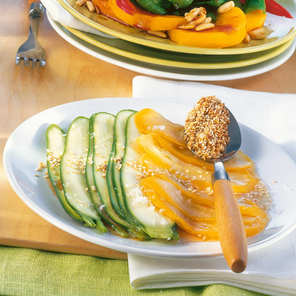 Die Zucchinischeiben müssen Sie zwar marinieren, aber viel Arbeit haben Sie mit diesem Salat nicht. Da lohnt der Aufwand auch für Zwei.