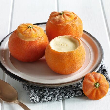 Fruchtig und cremig zugleich ist das Clementinen-Parfait, das einfach und schnell zubereitet ist. Raffiniert: Das Parfait wird in ausgehöhlten Clementinen serviert