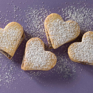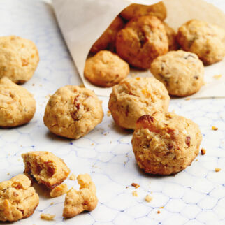 Aus dem Teig mit den Händen 35 haselnussgroße Kugeln formen und auf ein mit Backpapier ausgelegtes Backblech setzen. In die Mitte jeder Kugel 1 Stückchen Orangeat drücken. Cocolinchen im Ofen (Mitte) ca. 15 Min. backen, erkalten lassen und mit Puderzucker bestäuben.
