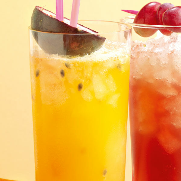 Die Orangenlimo in den Shakerbecher geben, einmal durchschwenken und durch das Barsieb in das Glas gießen. Die Maracujaschalenhälfte als »Hütchen« auf den Drink setzen und den Drink mit dem Trinkhalm sofort servieren.