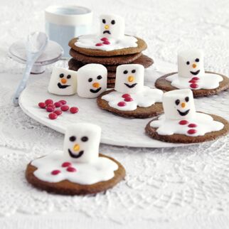 Die Kugeln zu ca. 2 cm hohen, runden Cookies flach drücken (z. B. mit einer breiten Backpalette). Im Ofen (Mitte) 10 - 12 Min. backen, sodass die Plätzchen oben noch hell und auf der Unterseite leicht gebräunt sind. Auf dem Blech auskühlen lassen, damit sie nicht zerbrechen.