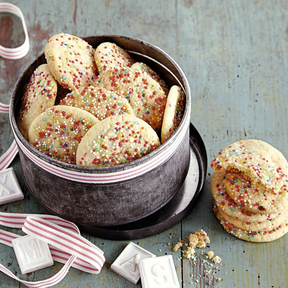 Konfettischlacht auf dem Plätzchenteller: Unsere Weihnachtscookies sind ratzfatz zubereitet und bringen nicht nur Kinderaugen zum Strahlen.