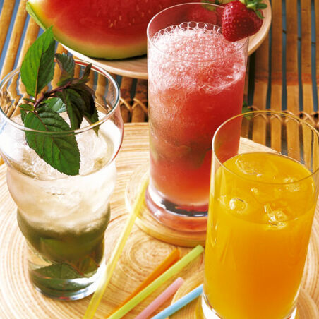 Minze kalt abspülen und mit Sake und Zuckersirup in das Glas geben. Die Minze mit dem Stößel etwas anquetschen.