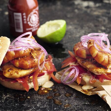 Crazy Chick – Burger mit Garnelen und Hähnchenbrust