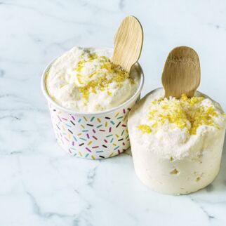 Äpfel schälen, vierteln und entkernen. Die Apfelviertel quer in Scheiben schneiden, mit Zitronensaft beträufeln. 100 ml Wasser in einem Topf aufkochen, Äpfel und Sirup hinzufügen und die Äpfel bei mittlerer Hitze in ca. 8 Min. weich garen. Das Fruchtmus mit dem Pürierstab fein pürieren, dann für 10 Min. zum Abkühlen in das Tiefkühlfach stellen.