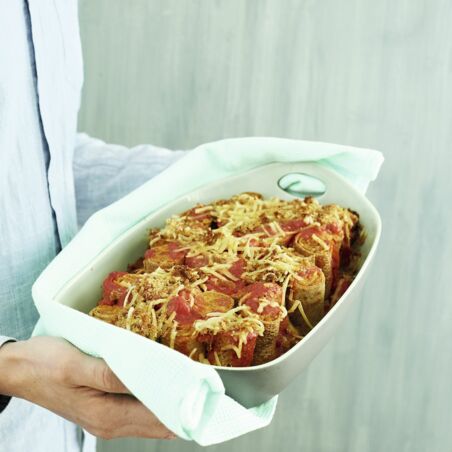 Crêpes kann man durchaus auch als Auflauf und mit Käse überbacken servieren. Sieht toll aus und schmeckt himmlisch.