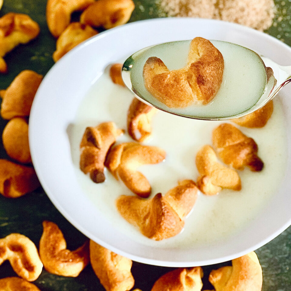 Der französische Frühstücksklassiker trifft in diesem Rezept auf frische Milch in einer Müslischüssel.