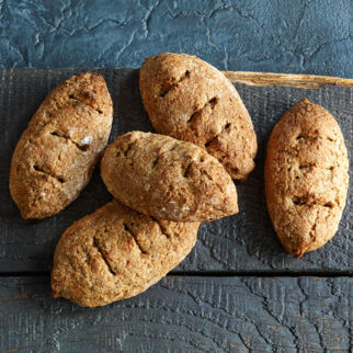 Ein Backblech einfetten. Mit feuchten Händen sechs Kugeln formen und auf das Blech setzen. Zugedeckt an einem warmen Ort noch einmal ca. 2 Std. ruhen lassen, bis sich das Volumen verdoppelt hat.
