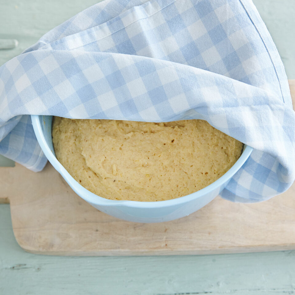 Bei diesem Teig empfehlen wir, auf ein glutenfreies Fertigmehl zurückzugreifen. Im Vergleich zu herkömmlichem Hefeteig ist der glutenfreie recht flüssig, er eignet sich deshalb ganz prima für das Backen in der Form. Von Hand formen geht nicht so gut, daher würden wir empfehlen, aus dem Teig auch keinen Hefezopf zuzubereiten.