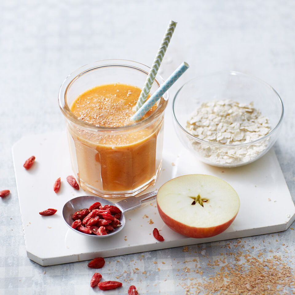 Goji plus Apfel - das könnte man auch "Smoothie-Jackpot" nennen. Viele wertvolle Vitamine, machen dieses Porridge zum Trinken zum wertvollen Energiespender.