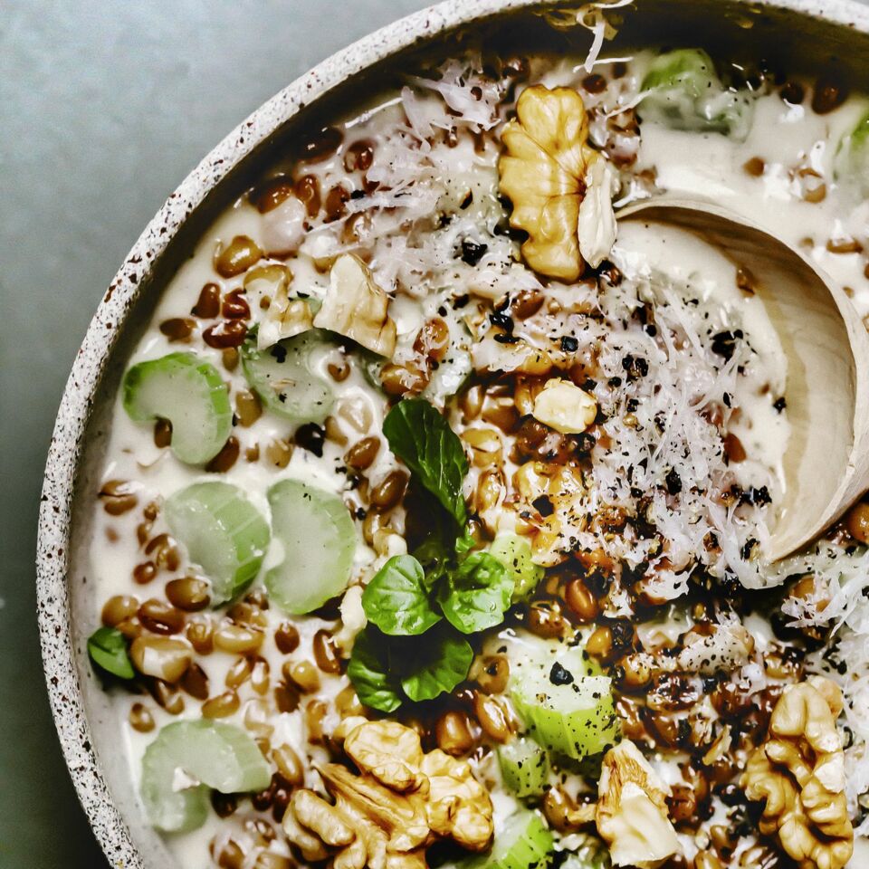 Dinkel-Ragout mit Sellerie und Walnüssen
