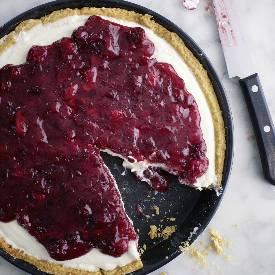 Dinkel-Tarte mit Joghurt-Mousse und Cranberrykompott