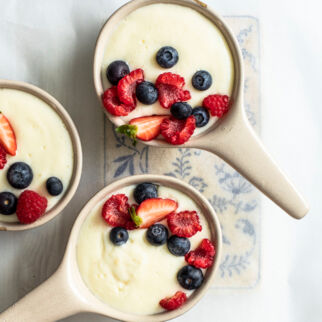 Ein Dessert-Klassiker wie er im Buche steht. Hier einmal aufgepeppt mit Heidelbeeren.