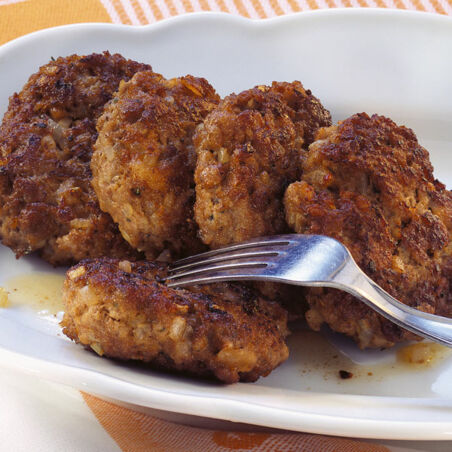 Buletten schmecken warm und kalt. Fürs Büffet walnussgroße Buletten formen und nach Belieben mit Käse oder Oliven füllen.