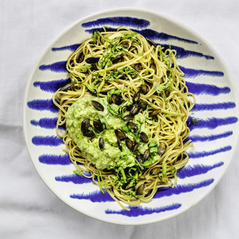 Edamamenudeln mit Avocado-Ingwer-Pesto
