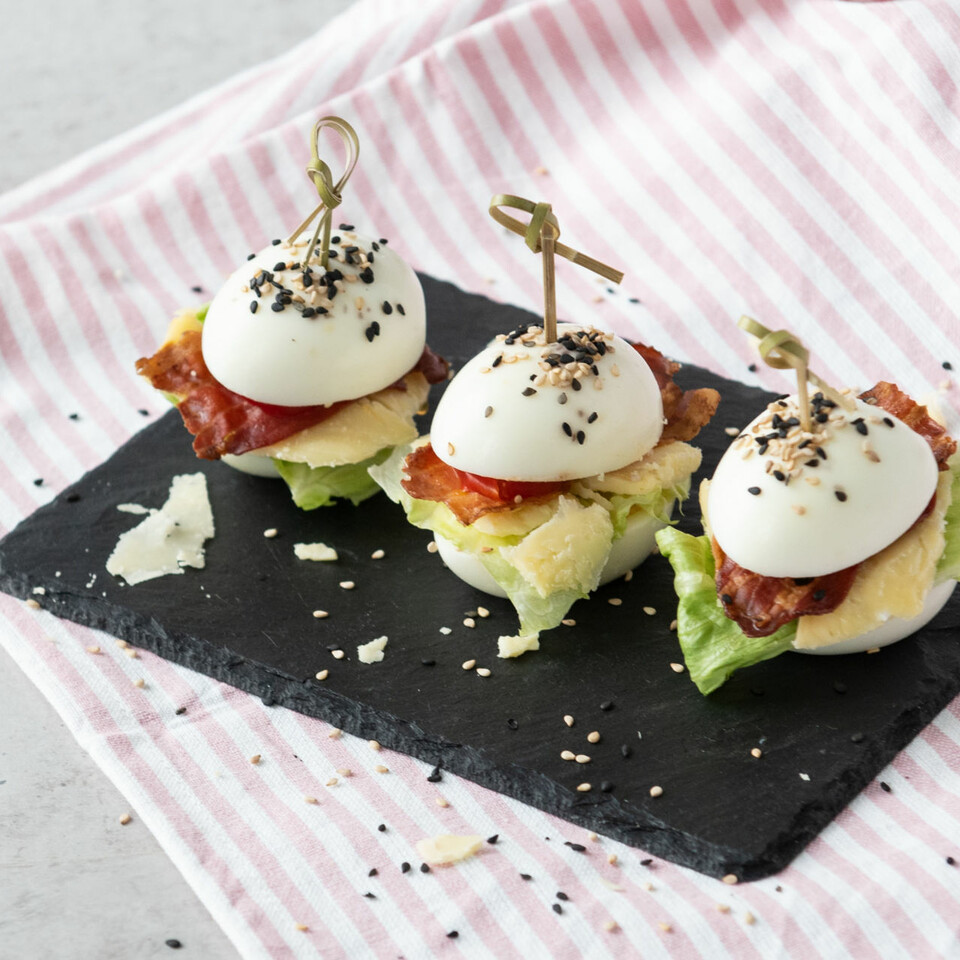 Diese Mini-Burger sehen hübsch aus und enthalten eine ordentliche Portion Protein. Sie eigenen sich zum Beispiel perfekt für dein nächstes Brunch-Buffet.