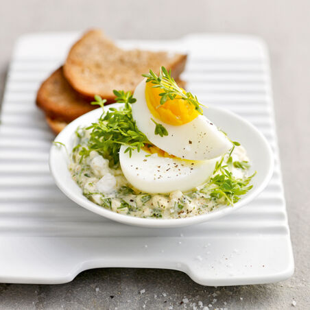 Die frühlingsfrische Käsezubereitung passt perfekt zu hartgekochten Eiern und ist ein idealer Imbiss fürs Büro.