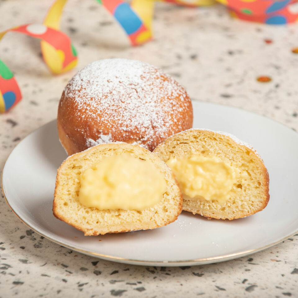 Mit unserer Eierlikör-Creme kannst du Gebäck, wie zum Beispiel selbst gemachte Berliner, füllen.