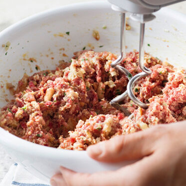 Hackfleisch und feiner Räucherspeck werden zusammen zu herzhaften Buletten verarbeitet.