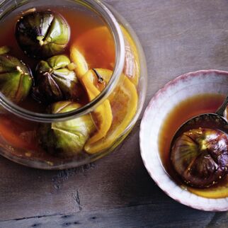Die Birnen auf die Gläser verteilen, Vanilleschotenstücke und Ingwerscheiben dazwischenstecken. Den Sud aufkochen und bis 3 cm unter den Rand der Gläser über die Birnen gießen. Die Gläser verschließen. Das hohe Blech halb in den Ofen schieben (unten), die Gläser daraufstellen und das kochende Wasser angießen. Das Blech ganz einschieben und die Ofentür schließen. Die Birnen ca. 50 Min. einkochen. Herausnehmen und abkühlen lassen.