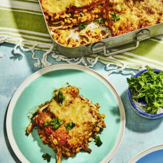 Backofen auf 225° (Umluft 200°) vorheizen. Zwiebeln und Knoblauch schälen, fein hacken und in Öl glasig andünsten. Spinat zugeben und auftauen lassen. Mais und Bohnen abtropfen lassen, zum Spinat geben und miterhitzen. Mit Salz, Pfeffer und Tabasco abschmecken.
