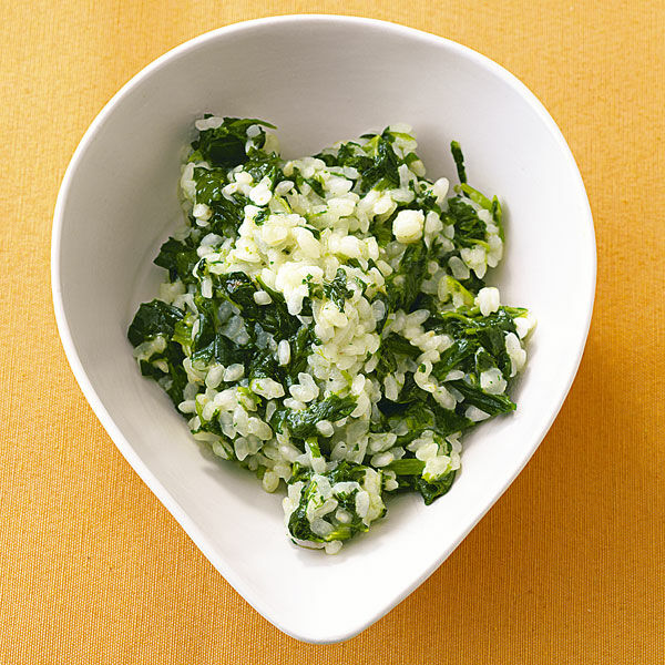 Ein Risotto mit Spinat für Mutter und Kind. Statt Milchreis können Sie auch Risottoreis nehmen.