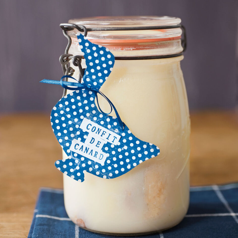 Das Entenkeulen-Confit abkühlen lassen, gut verschließen und bis zum Verschenken im Kühlschrank aufbewahren.